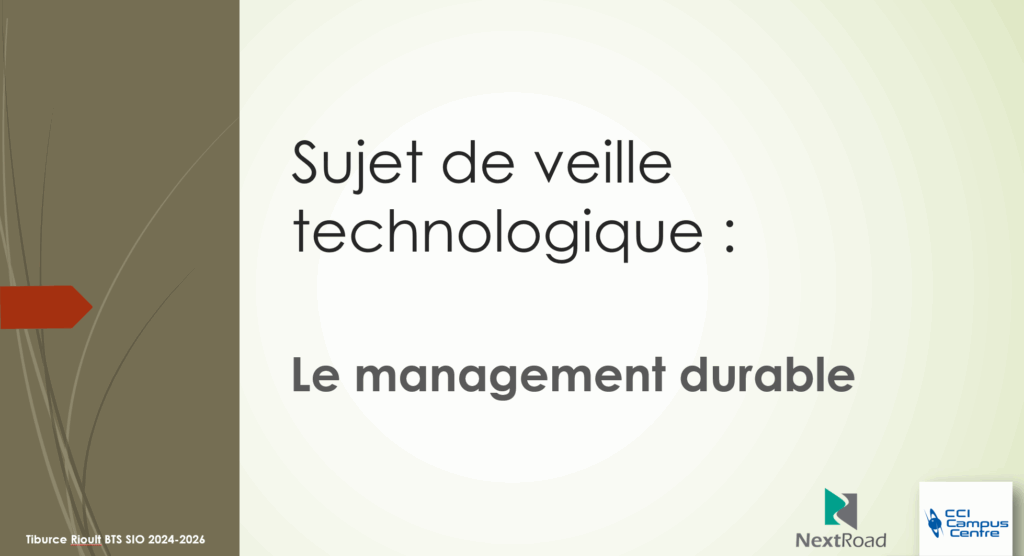 Dans le cadre de mon BTS SIO option SISR, j’ai mené une veille technologique sur le management durable, une approche de gestion qui vise à intégrer les enjeux environnementaux, sociaux et économiques dans la stratégie des organisations.