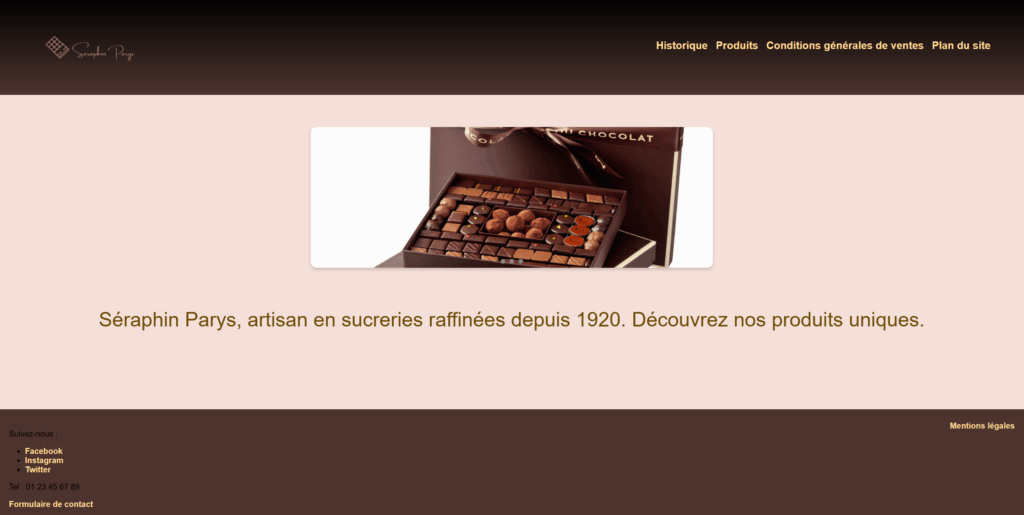 Dans le cadre de ma formation à la CCI Campus Centre, j’ai conçu un site vitrine fictif pour une entreprise spécialisée dans la fabrication de chocolat. Ce projet s’inscrivait dans le respect d’un cahier des charges précis, ayant pour objectif de valoriser l’image de l’entreprise, de présenter ses produits, et d’intégrer un formulaire de contact pleinement opérationnel.